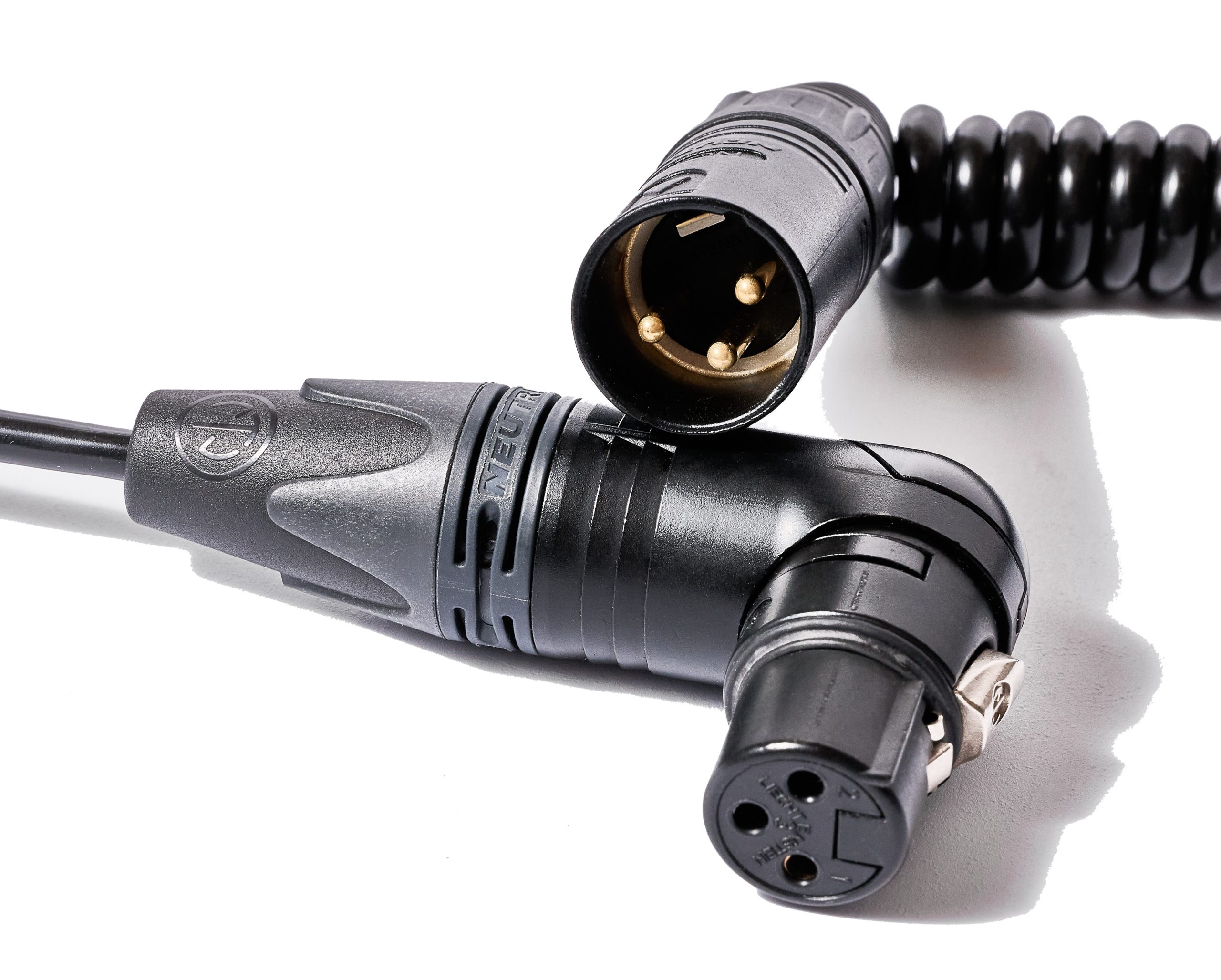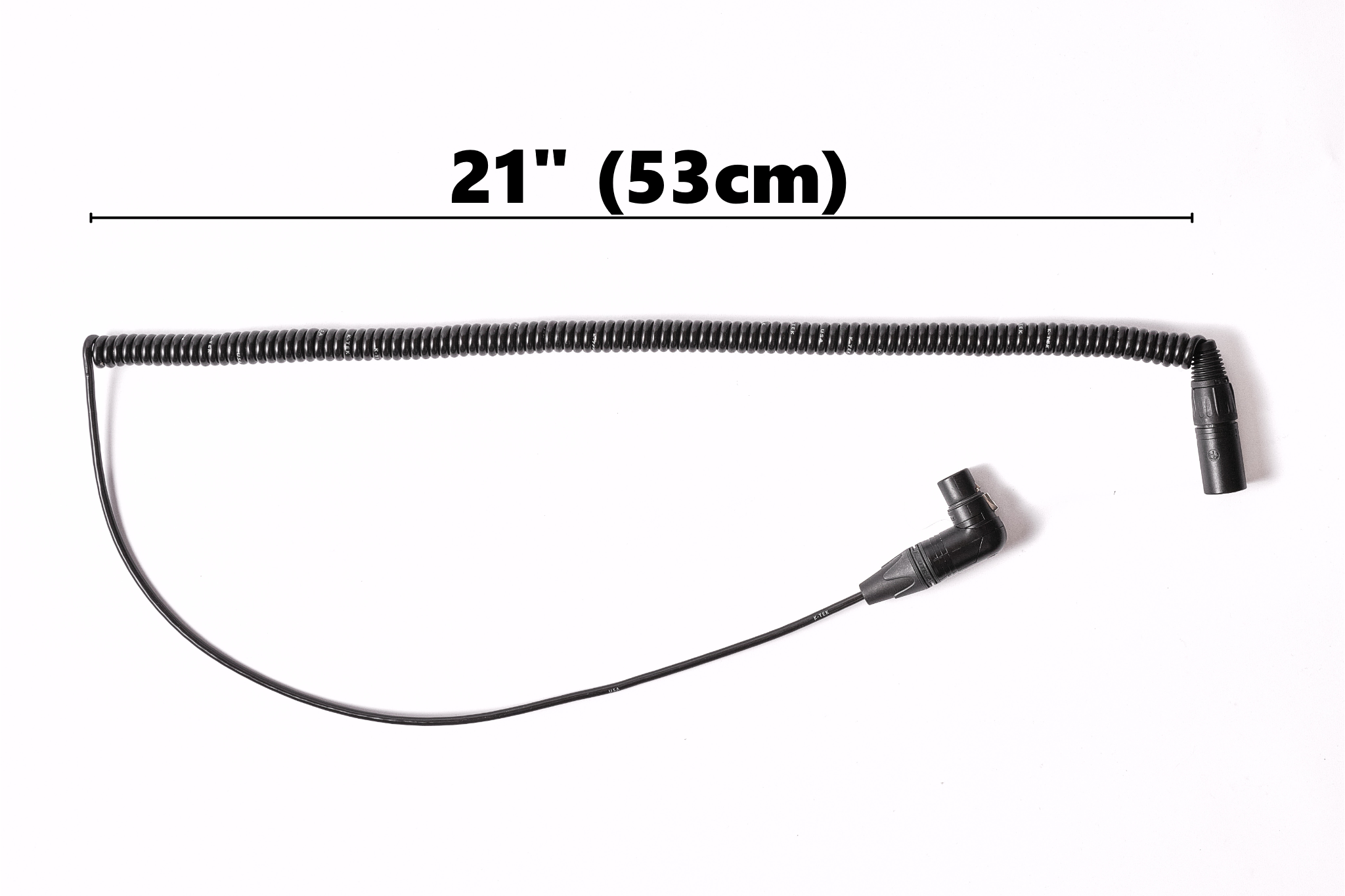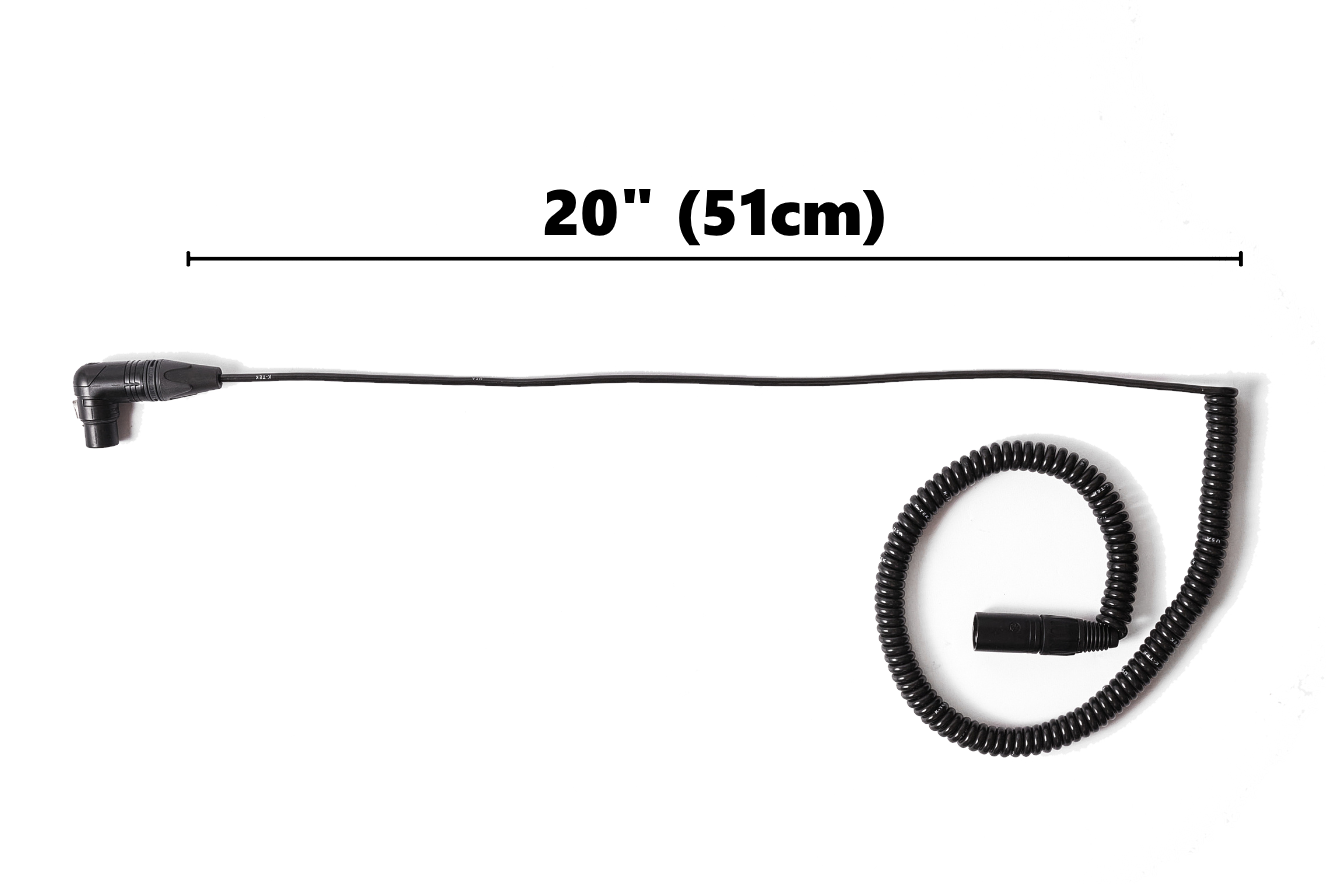 KBOC1 – K-Tek Boom Cable, (Set of 2x, with 2x BongoTies) This is a proprietary cable with extra shielding and strong Neutrik connectors. From a non-stretched 41″ (104cm) to an approx 5-6 feet (150 – 180cm) strechted this cabe is working reliably on set. One end is kept straight for 20″ (51cm) so a smooth sliding into a boom pox is guaranteed. The coiled section of the cable offers great retraction performance The straight end is fitted with a Neutrik right-angle female connector, while the coiled end features a Neutrik straight male connector.
